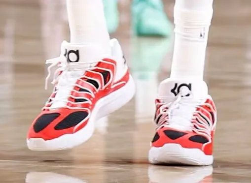 比赛中,杜兰特上脚长岛路德高中配色Nike KD18"LuHi"PE。